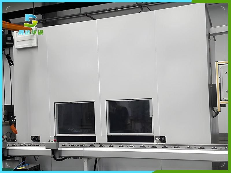 門窗關(guān)閉結(jié)合面采用密封嵌條密封;隔音房外接縫采用鋁合金嵌條壓接,整體美觀實(shí)用。.隔音房為五面體,四周依次為進(jìn)料面、主操作面、成品收集面及后操面,各面設(shè)有透明觀察窗和操作者進(jìn)出操作門,方便觀察沖床的工作情況。